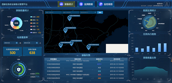 國家應(yīng)急安全裝備云管理平臺集設(shè)備分布、裝備統(tǒng)計(jì)、視頻集成于一體,做到全局把控、設(shè)備監(jiān)測、全生命周期綜合使用可視化操作。當(dāng)遇到突發(fā)事件時,能在線直觀的分析并高效的了解到設(shè)備實(shí)時狀態(tài)。 國家應(yīng)急安全裝備云管理平臺通過與服務(wù)器后臺平臺進(jìn)行信息傳輸,實(shí)現(xiàn)線上查看設(shè)備信息的操作、瀏覽和統(tǒng)計(jì)。工作人員可以通過國家應(yīng)急安全裝備云管理平臺了解各個設(shè)備的基本信息,掌握現(xiàn)場設(shè)備設(shè)備的工作狀態(tài)、運(yùn)行情況、監(jiān)測氣體、視頻、電量情況等信息,從而快速實(shí)現(xiàn)了裝備與人、裝備與云、人與云互通互信的過程,同時解決了以前對設(shè)備信息不了解、現(xiàn)場情況無法實(shí)時查看、效率低、難題。在提高工作效率的同時增加了物聯(lián)網(wǎng)的準(zhǔn)確性和先進(jìn)性,解決了以往信息傳遞難、無電子版信息儲存、無統(tǒng)計(jì)分析等問題。 | |