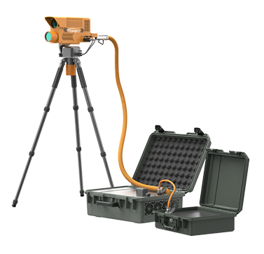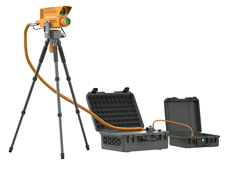 光學(xué)破拆裝置內(nèi)置高能光纖激光器,能夠從地面發(fā)射激光對(duì)鋼板、鋁板、鋼筋、彩鋼瓦、樹木、塑料、馬蜂窩等進(jìn)行遠(yuǎn)距離切割清除。