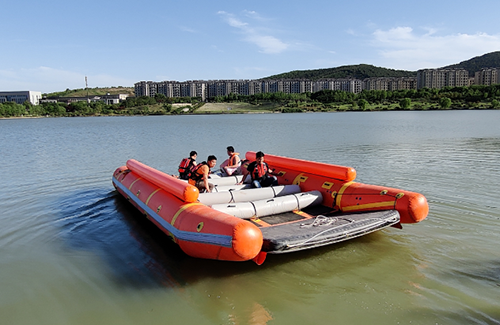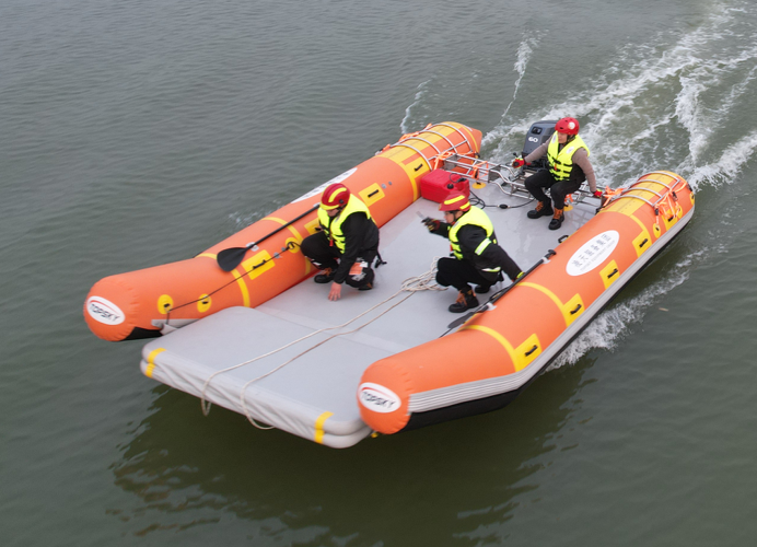 充氣救援運輸船適合水域救援時用來運輸人員、貨物、小型車輛、機械等。也可用來運送救災物資、救災用照明與電力設備等