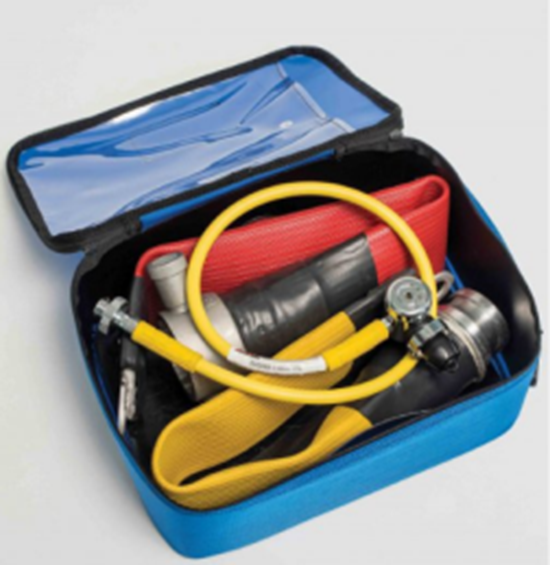 充氣管道救援套組的設(shè)計和開發(fā)旨在提供一種簡單而有效的方式,使用標(biāo)準(zhǔn)長度的消防水帶提供下游安全吊臂或浮動救援輔助設(shè)備。充氣管道救援套組充氣系統(tǒng)可使消防水帶兩端密封,尾部帶2個密封件,公頭末端為黃色,以便清晰識別并在使用時增加可視性。該系統(tǒng)的工作壓力為1.5巴,并使用系統(tǒng)提供的充氣套件進(jìn)行充氣,該系統(tǒng)配有預(yù)設(shè)3.5巴的壓力調(diào)節(jié)器。母頭的尾巴