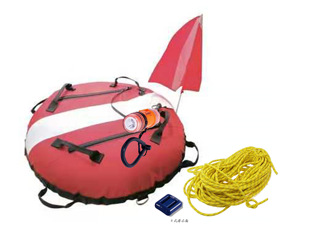 定位浮標可用于水面區域劃分以及打撈搜救目標定位。浮力20KG。充氣時間:5秒;寬度30CM,高度30CM。充氣設計,重量輕,存儲方便。配有充氣閥和安全閥防止充氣時過壓爆炸。具備夜視反光功能,黑暗環境中閃爍。底部有掛孔。浮標周圍帶有提拉把手,裝備存儲袋,安全繩以及標志旗。
