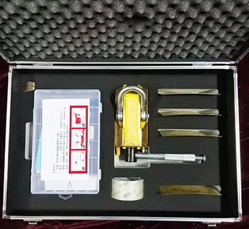 表面采用防爆鋁青銅材質,內部利用超強永磁體對鋼鐵容器的吸附力,通過操縱手柄控制工作面上的磁通量,吸住泄漏的有磁金屬表面,達到工具和泄漏本體之間的壓合和釋放。仿形壓片,是在墊在磁壓堵漏器本體與泄漏口之間的薄板,用它可彌補二者之間的空隙,減小磁阻,改善堵漏膠的分布狀態。快速堵漏膠調均勻后堆向泄漏口,同時扳動通磁手柄,可阻止內壓液體流出,讓膠體有時間凝固,數分鐘內膠固化后,堵漏即告完成。堵漏膠和密封劑能承受水、油、液化氣、30%硫酸、30%鹽酸、氫氧化鈉、飽和氯化鈉溶液的侵蝕。
