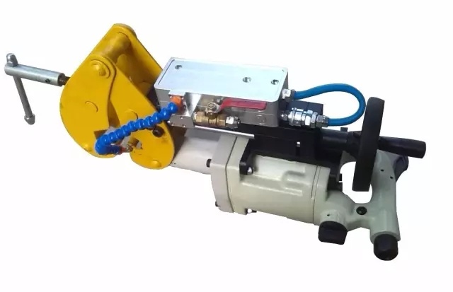 產(chǎn)品介紹: ZQG-8/0.4 氣動鋼軌鉆適用于15kg/m-30Kg/m各種鋼軌軌型鉆孔作業(yè)。整體結構緊湊,質量輕、操作靈活、夾具裝置有自鎖功能,定位準確、鉆孔精度高。采用空心鉆頭、也可裝卡麻花鉆頭,鉆孔有自動給水功能,造型美觀、礦山輕軌鉆孔理想設備。 鋼軌鉆由主機、雙重斷水保護裝置、進口硬質合金鋼軌鉆頭、凈化器、張緊裝置等組成,液壓膠管總成將氣源和主機連接起來,經(jīng)過凈化的氣源提供的氣壓驅動鋼軌鉆投高速鉆進,進行切割。灑水冷卻噴頭和雙重斷水保護裝置起到冷卻和降塵的作用,保護機器正常運轉。
