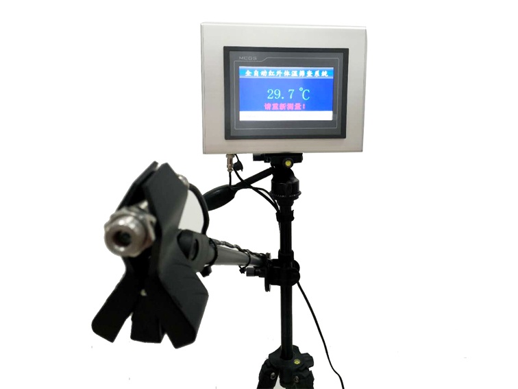 全自動紅外體溫篩查系統是由非接觸式紅外探頭,傳感器,光 學系統,智能檢測控制系統,高清7寸觸摸顯示屏等部分組成.能夠 在不接觸人體的情況下,依據人體發射紅外輻射強度,轉換成實際 的溫度數值,并通過人機交互界面進行顯示和報警.高清屏幕顯示, 可保證測量結果清晰可見,高溫聲光報警有助于工作人員快速篩 查可疑人員;該產品可以同三腳架搭配 使用,方便攜帶和快速部署,可應用于機 場、港口、車站、學校、賓館和醫院等 公共場所的體溫篩檢;