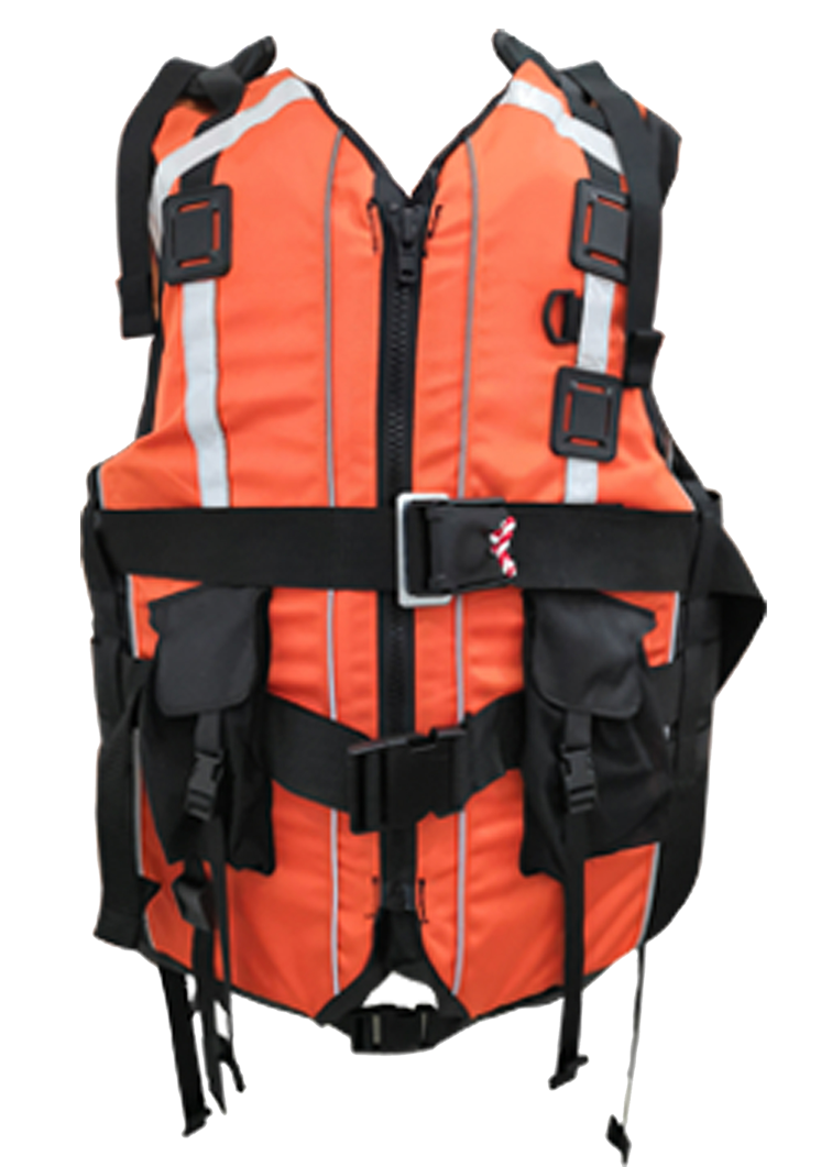 面料采用方形針織壓力點和1680D材質的Cordura?面料使得該款救生衣足夠應對復雜的水域活動。采用背心式設計,胸襟采用YKK塑鋼開口拉鏈,并使用塑料拉頭浮力片固定于布料夾層內,后領口增加手提式松緊提拉帶設計,方便于攜帶。