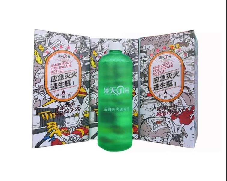 應急逃生滅火瓶為滅火劑裝于環保可降解的特殊樹脂瓶中,只需投擲于火源中,滅火瓶觸碰到物體即可破碎,滅火劑會從破裂的瓶中瞬間散布出來, 在燃燒物表面流散的同時液體冷卻其表面,并在燃燒物表面上形成一層水膜與泡沫層共同封閉燃燒物表面,隔絕空氣,形成隔熱屏障,吸收熱量后的液體汽化并稀釋燃燒物表面上空氣的含氧量,對燃燒物體產生窒息作用,阻止了燃燒的繼續;同時,該滅火劑與燃燒物質發生化學反應,形成聚合物質,該聚合物質能有效地抑制或降低燃燒自由基的產生,破壞燃燒鏈,阻止燃燒. 應急逃生滅火瓶是一種多功能、高效、環保、無毒、可100%自然降解的植物型初期火災滅火劑,由生物高分子聚合物、碳氫表面活性劑、阻燃劑、穩定劑、助劑等多種成份組成的環保型滅火劑,以撲滅A、B、E、F類初期火火災。