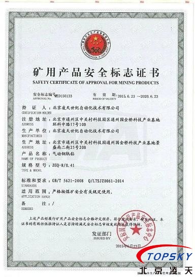 北京凌天氣動鋼軌鉆取得安標認證了
