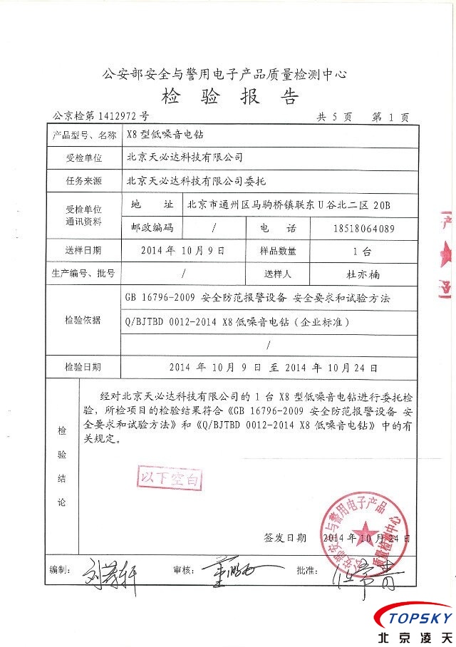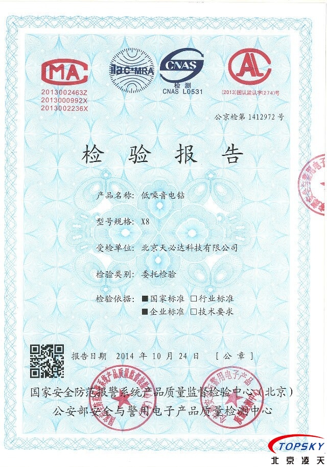 X8靜音電鉆 通過公安部權(quán)威機(jī)構(gòu)檢測