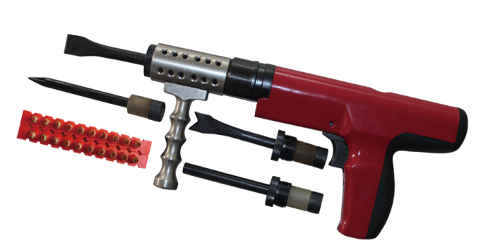 3、射擊時,將毀鎖槍垂直在障礙面上,扣扳機擊發,如未擊發,需繼續保持緊壓工作面30秒種,才能拿起毀鎖槍,并重新供彈擊發。一次擊發后,用力將槍管拉出到最外端,然后用力再將之推到底,就完成一次退殼供彈過程,可進行下一步擊發。平鏟用于鏟斷鎖鏈、護欄、螺栓等,圓柱鏟可用于擊毀鎖芯等。V型鑿可切斷鋼筋,切開鐵板等,尖鑿可對鐵皮打孔等。