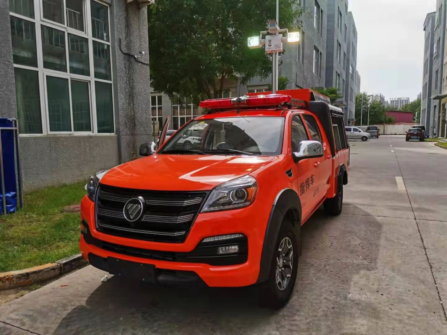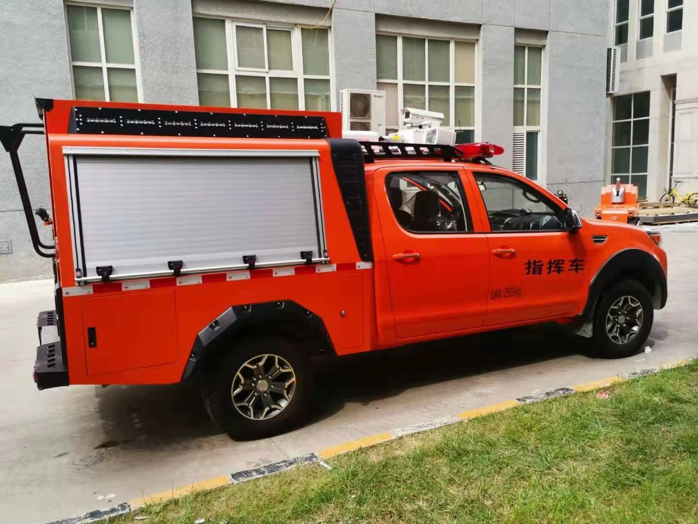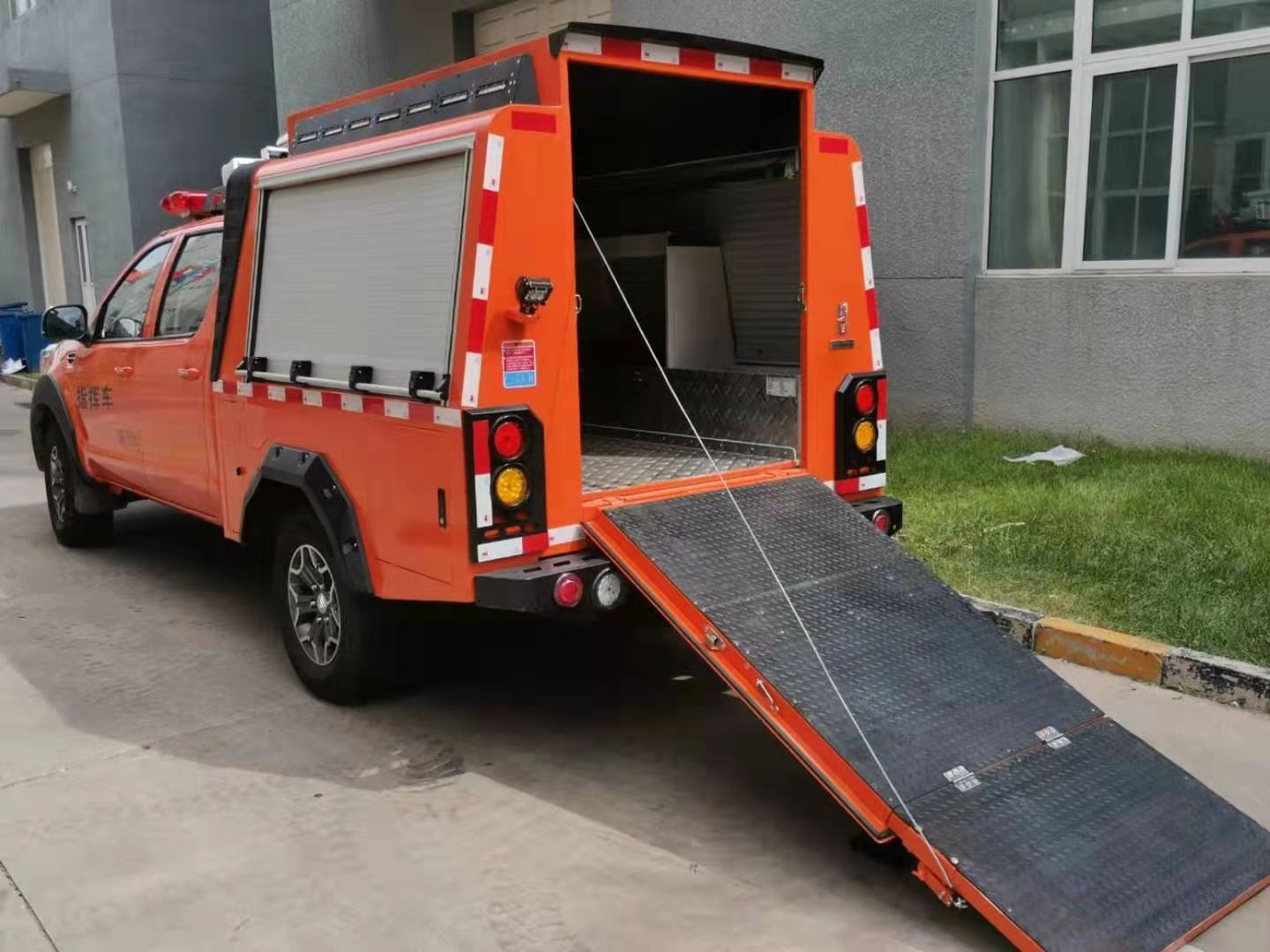 專門為特種機器人量身定做的一款機器人運輸車,由皮卡車改裝,區別于傳統意義上大型運輸車,體積更小,動力更足。車廂設計有升降照明系統,解決了救援現場能見度低的問題,1.2-1.8米升降高度,可滿足不同照明需求。車體頂部裝有4G圖像傳輸系統,可將現場情況實時傳輸到指揮部,有利于指揮現場調度。配有一體化機器人裝運梯,最大承壓≥600Kg。后箱四周配有一圈小型照明系統,可用于晚間或光線昏暗等環境。后箱設計有獨立儲物架,可放置機器人配套設備。兩側卷閘窗設計方便拿用。