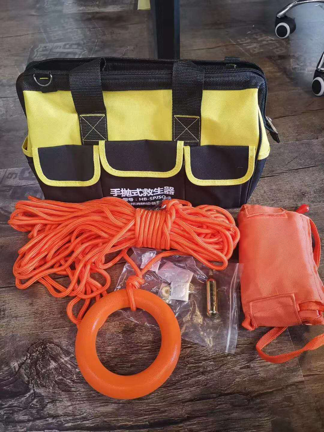 可遠(yuǎn)距離投擲,可自動(dòng)充氣。每套配置4 枚手拋彈頭,彈頭內(nèi)置自動(dòng)救生圈,每發(fā)彈頭落水2.9秒內(nèi)自動(dòng)打開形成具有浮力155N的救生圈。配置直徑8 毫米,長度30米水域救生繩一根。救生圈更換配件可實(shí)現(xiàn)多次重復(fù)使用。 配置:手拋彈頭。水域救援繩。水域救援手環(huán)。安全鉤。