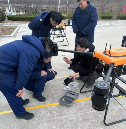LT-F50-MH陸空兩棲高層建筑系留滅火無人機,是我公司針對城市高層消防需要而最新自行設計的,該無人機通過高空噴水滅火作業,充分實現了操作人員與火災現場遠距離分隔的優點,能很好地保護滅火人員的人身安全。該無人機具有結構新穎,性能穩定可靠,操作靈活,維修方便、噴水距離遠、流量大等特點,同時,該無人機具備陸空兩棲功能,可以在地面行駛。該無人機可裝載在消防車上,能快速啟動升空,通過特制高壓水帶與消防車水罐連接,消防車水罐內部高效泡沫/水基滅火劑輸送到無人機平臺,在水槍噴口水平噴射出去,達到滅火的效果。