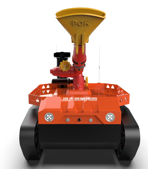 機器人采用無線遙控設計,遙控器與監視器一體/分離,可實時的顯示電池、內部的各種信息,機器人狀態、現場溫濕度、有毒有害氣體濃度報警信息等控制機器人前進、后退、轉向等運動。具備遠程偵察能力,機身搭建升降云臺、高清攝像頭、熱成像攝像頭、氣體傳感器三類環境感知設備和云臺控制設備,也可聯動聲光報警模塊提醒消防人員或群眾,有效避免危險。在通過遠程偵察手段有效獲取現場火源信息后,機器人配備的大功率電機可以幫助消防人員將消防水袋拖拽至危險火源區域進行滅火,并能搭載各類國內、外的多種消防水泡,并能夠遠程控制發射水或泡沫?;谒鋫涞氖耙裟K和揚聲器模塊,拾取現場環境聲音,即使消防官兵未靠近消防現場也能夠聽到搜救現場的群眾呼救聲,并通過揚聲器模塊與群眾進行現場對話。