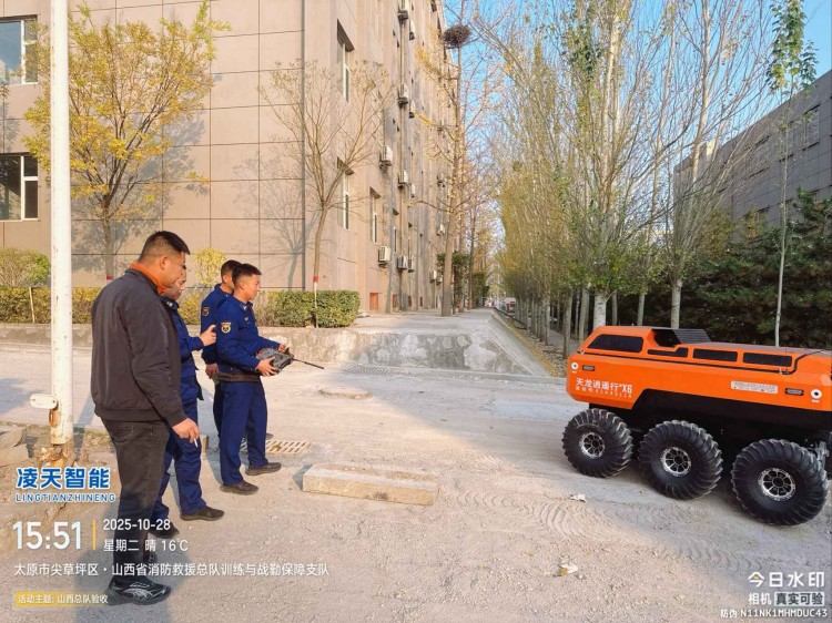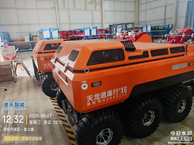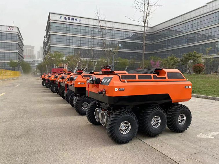 采用6×6輪式底盤,液壓驅動,裝有真空輪胎,另加配水下推進器,增加水中行進效率,水陸兩棲,可全地形行駛;