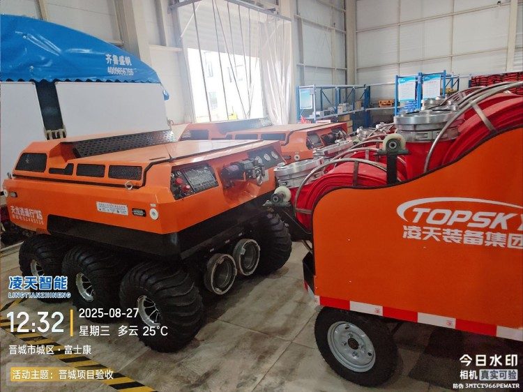 供排水機器人配有大口徑水帶收放車,采用電動快速鋪設系統,操作簡單,實用性強等特點,解決了人力收放水帶的不便利性,增加了救援時間。
