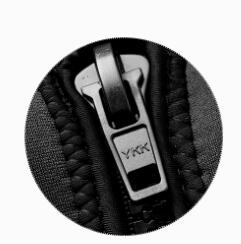 前置拉鏈和腰部踝部拉鏈,拉鏈使用采用樹脂材質,使穿脫便捷。
