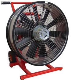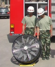 適用于有進風和出風的火場建筑物,利用排煙機的正壓把新鮮空氣通過建筑物進風口吹進建筑物內,把煙霧從建筑物內吹出,清除火場煙霧,使消防員能夠進入建筑物內的火場進行滅火。根據需要可以調節風扇的出風口的角度和風扇的轉速. 利用高壓水作動力,驅動水動機運轉,帶動風扇排煙, 具有防爆功能,重量輕,移動方便.