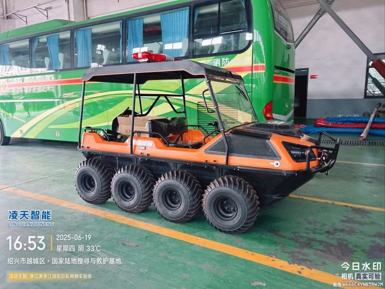 全地形:上山下水,爬坡過(guò)坎,泥潭沼澤,8×8低壓輪胎適合所有救援場(chǎng)景,最大可以乘坐6人。