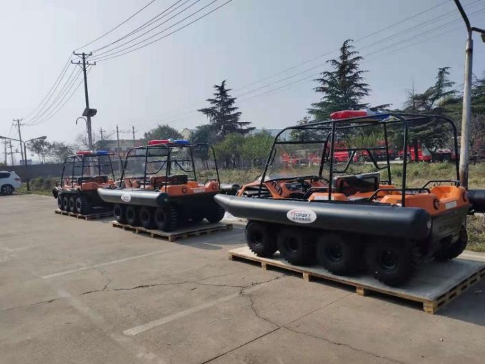 在復(fù)雜惡劣的地形條件和自然環(huán)境下,水陸兩棲全地形車(chē)可以讓搜救隊(duì)員和攜帶的救援裝備快速到達(dá)救援現(xiàn)場(chǎng),減少徒步帶來(lái)提供消耗,完成最后一公里最好五分鐘緊急救援任務(wù)。水陸兩棲全地形車(chē)可配備點(diǎn)到絞盤(pán)、救援擔(dān)架組件、探照燈、警示燈、警報(bào)器、脫鉤、破拆工具等裝備, 給救援團(tuán)隊(duì)提供救援保障,更安全的解救傷員和疏散群眾。