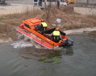 針對水災頻發的地區,水域救援任務必不可少。但往往洪澇災害、城市內澇往往伴隨著惡劣的天氣和崎嶇的地形,沖鋒舟需要多次搭載不同交通工具并數次轉移,水陸兩棲全地形車可以輕松通過水淹、泥濘、沼澤等環境,無需人力搬運,實現陸地駕駛和水中行走自由切換,以最快的時效抵達現場實施救援。