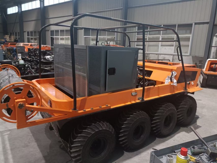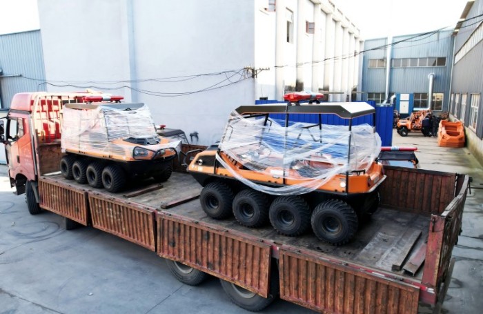 在復雜惡劣的地形條件和自然環境下,水陸兩棲全地形車可以讓搜救隊員和攜帶的救援裝備快速到達救援現場,減少徒步帶來提供消耗,完成最后一公里最好五分鐘緊急救援任務。水陸兩棲全地形車可配備點到絞盤、救援擔架組件、探照燈、警示燈、警報器、脫鉤、破拆工具等裝備, 給救援團隊提供救援保障,更安全的解救傷員和疏散群眾。