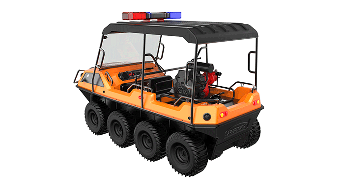 在復雜惡劣的地形條件和自然環境下,森林消防水陸兩棲全地形車可以讓搜救隊員和攜帶的救援裝備快速到達救援現場,減少徒步帶來提供消耗,完成最后一公里最好五分鐘緊急救援任務。森林消防水陸兩棲全地形車可配備點到絞盤、救援擔架組件、探照燈、警示燈、警報器、脫鉤、破拆工具等裝備, 給救援團隊提供救援保障,更安全的解救傷員和疏散群眾。