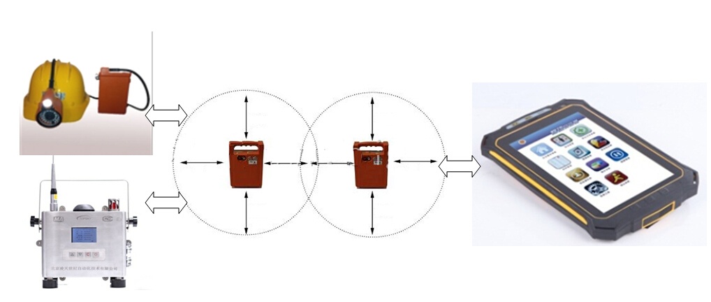 該系統采用無線連接方式的信號中繼與傳輸,應急通信網絡的通信距離可達20公里。無線通信網絡采用自組織、自愈合方式快速形成多跳鏈狀或網狀網拓撲結構,無線通信距離不小于2000米,具有快速部署、高帶寬、低時延、可靠性強等特點。井下救援人員或工作人員,通過佩戴礦用本安型平板計算機、配套的低照度攝像頭自帶語音通話、無線中繼器、多參數測定儀等裝備,將現場的實時圖像、語音、環境參數等信息實時回傳到指揮平臺,調度指揮人員可以實時了解現場情況,并對現場人員進行調度指揮。