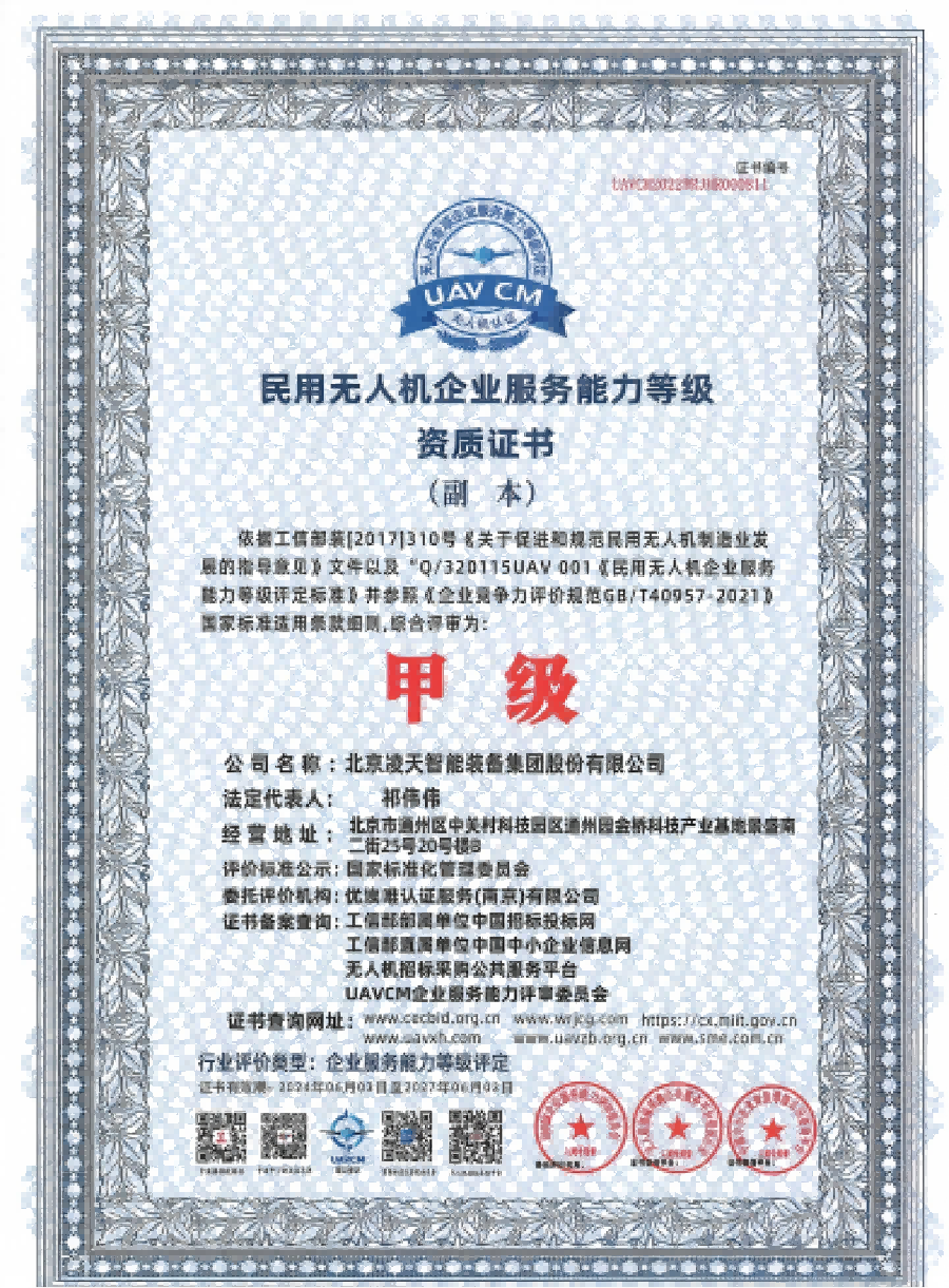 | 資格類 | 民用無人機企業服務能力等級資質證書(甲級) | |