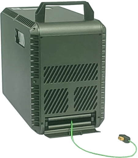 機(jī)載系留電源箱是一種向工作在高空的照明無(wú)人機(jī)提供電力的供電系統(tǒng),系統(tǒng)由系留電源箱、機(jī)載模塊組成,通過(guò)地面系留供電系統(tǒng)源源不斷輸送電力,可實(shí)現(xiàn)24小時(shí)不間斷滯空,懸停,解決了常規(guī)無(wú)人機(jī)續(xù)航能力不足的難題,在救災(zāi)搶險(xiǎn),電力搶修等一些突發(fā)情況中發(fā)揮了重要作用。