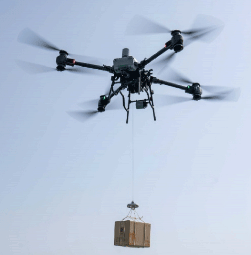 機載緩降器卷揚機依靠無人機的靈活性,可快速對現場進行作業部署,提升貨物時有較強的機動性能。設備操作簡單,控制明了,可一鍵實現對貨物的上升、下降、放貨,具備一鍵斷繩功能,當設備回收受阻時,一觸發緊急斷繩機制,保障無人機的安全