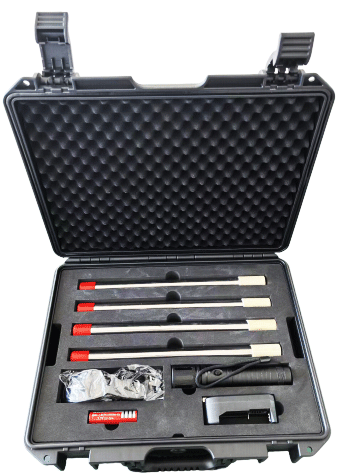 本款無電切割刀是一種利用高能藥劑產生的化學能完成破拆的便攜式破拆工具。無須任何外能源注入和任何輔助設備就可以輕松破拆鋼筋、鋼板、防盜門、防盜窗等金屬類障礙物,還可以破拆鋼化玻璃、中空鋼化玻璃等玻璃類障礙物。噴焰理論溫度超 2200℃,可熔化絕大多數常見金屬障礙物(如:鋼材、鋁材、鋁合金、銅材),破拆能力強。設備總重小于 700G,小巧輕便,可隨身攜帶,操作簡單,可以在無電、無氣、無水、高空、野外等大型設備無法抵達的復雜環境下正常工作。