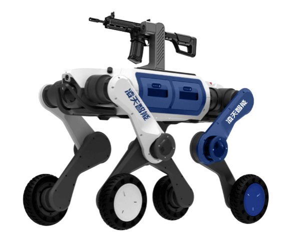 武裝打擊輪足機(jī)器狗主要用于軍事和邊防領(lǐng)域,具備攻擊和防御能力,應(yīng)用場景廣泛。