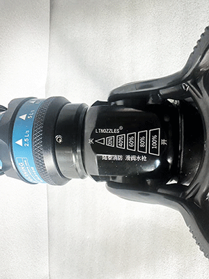 水槍開關閥門采用鋁合金滑閥設計,滑閥可調節流量,從而實現水槍從20%-40%-60%-80%-100%精準控制。擋位:≥5擋,通過旋轉槍身流量調節環,可實現2.5L/s-5L/s-8L/s-10L/s-Flush(沖洗)等5個檔位調節。